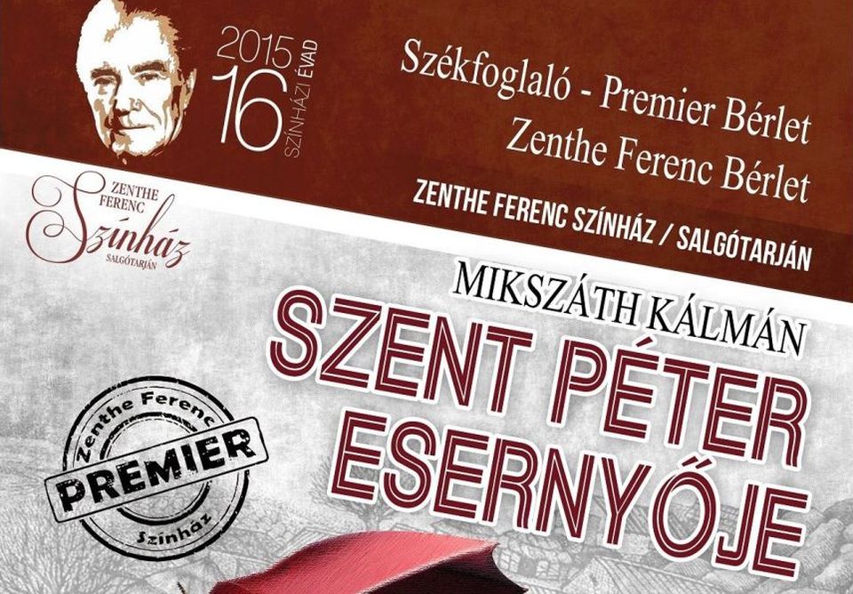 Az évad utolsó premierjére készül a salgótarjáni Zenthe Ferenc Színház, május 23-án, hétfőn .este Mikszáth Kálmán Szent Péter esernyője című darabját mutatják be.
