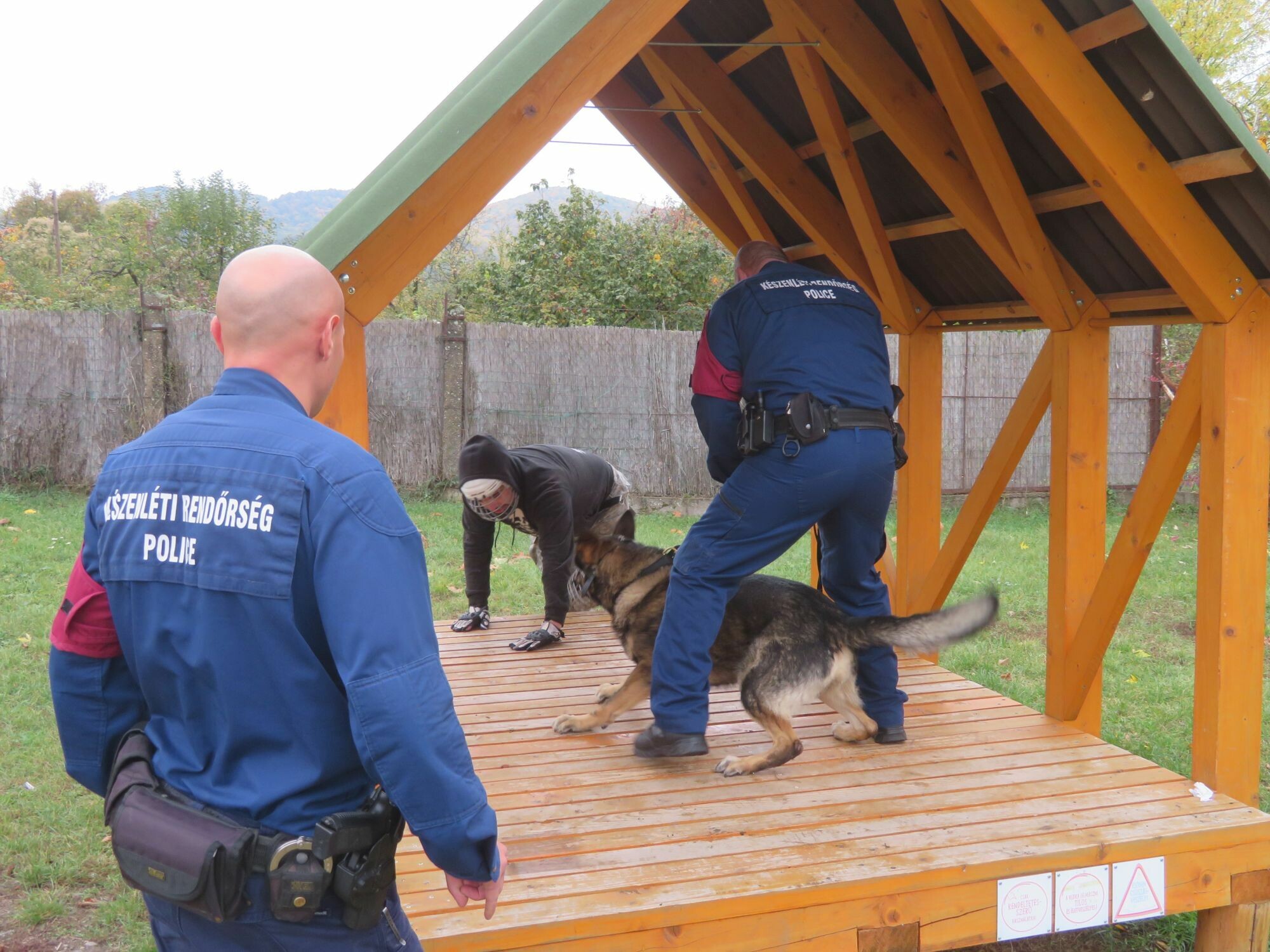 A rendőri feladatok hatékony ellátásához és az ebek szakszerű alkalmazásához elengedhetetlen a kutyás rendőrök és szolgálati kutyáik rendszeres tréningje. A Nyugat-Nógrád vármegyei településen megszervezett képzésen a kutyavezetők és az egyesület tagjai közösen készítették fel az ebeket a fegyelmező- és őrző-védő gyakorlatok szakszerű végrehajtására, valamint az eredményes nyomkövetési képességekre.