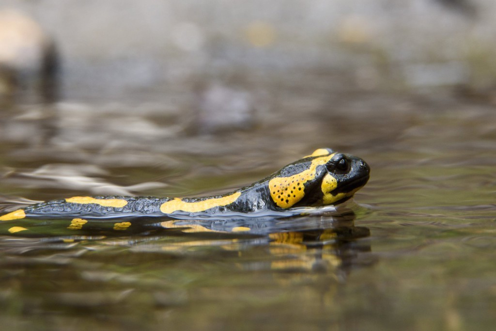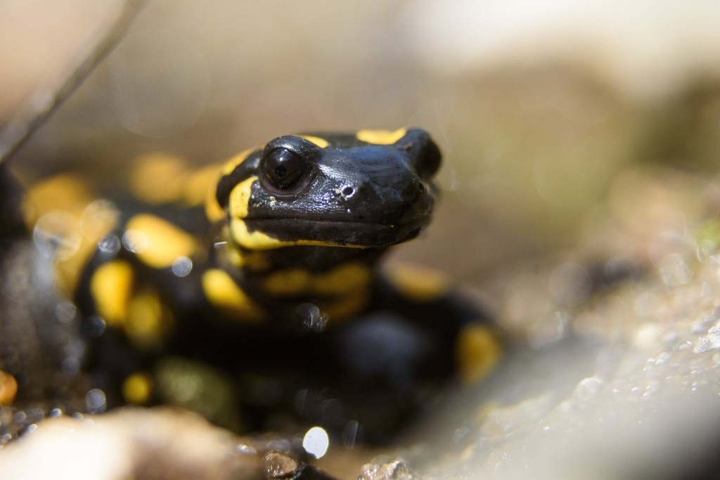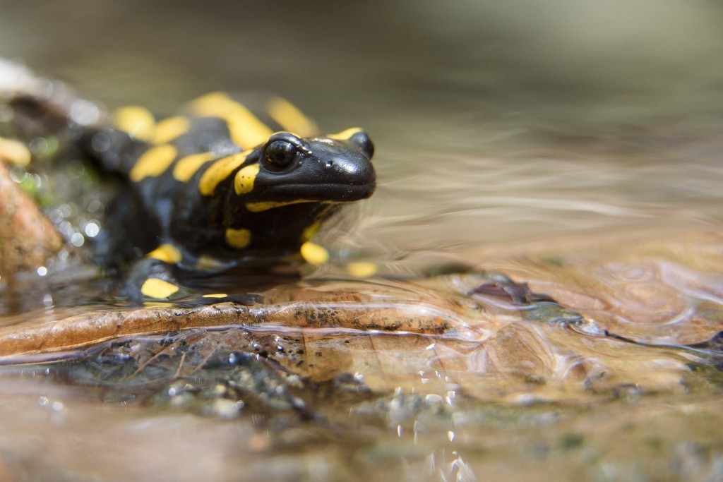 Többek között sikerült megörökítenie a Sátormegi-patak melletti erdei virágok között megjelent fokozattan védett hüllőt, a Szalamandrát is.